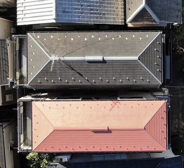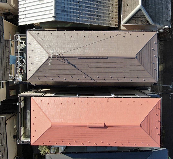塗装する事によってお好みの色に変えられるメリットがあり以前より美観がよくなるでけではなく、防水・遮熱効果もあり、屋根材の保護になります。