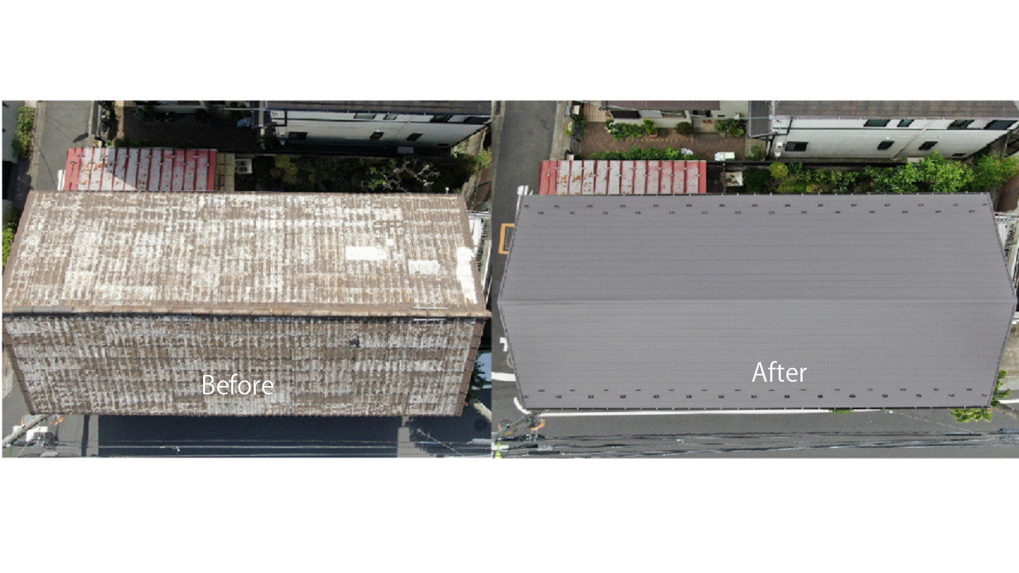 既存の屋根材を取り外すので防水シートや野地板などの内部の修復もでき、屋根の耐久性と寿命を向上させます。